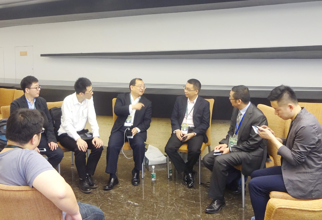 廣電計(jì)量副總經(jīng)理、董事會(huì)秘書(shū)歐楚勤(右三)與SGS、BV、TUV、我要測(cè)等企業(yè)高管座談交流