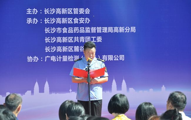 7月6日,2017年長沙高新區(qū)食品安全宣傳周暨長沙高新區(qū)食品安全宣傳教育基地授牌儀式,在高新區(qū)廣電計量大廈廣場前隆重舉行,來自長沙高新區(qū)管委會、長沙市食藥監(jiān)局、長沙高新區(qū)食安辦、長沙市食藥監(jiān)局高新分局、長沙高新區(qū)共青團工委、麓谷街道等相關(guān)政府領(lǐng)導,攜食品行業(yè)代表及食品安全志愿者、周邊街道群眾逾300人,共同見證長沙高新區(qū)食品安全宣傳教育基地落戶廣電計量。