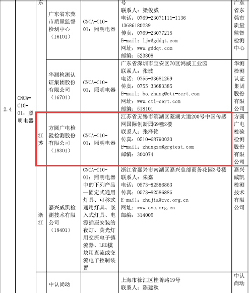 2017年9月18日,國家認監委發布了2017年第三批強制性產品認證實驗室年度指定決定的公告,廣電計量合資子公司方圓廣電檢驗檢測股份有限公司(簡稱方廣檢測)被指定為照明電器產品的強制性產品認證(CCC)實驗室。
