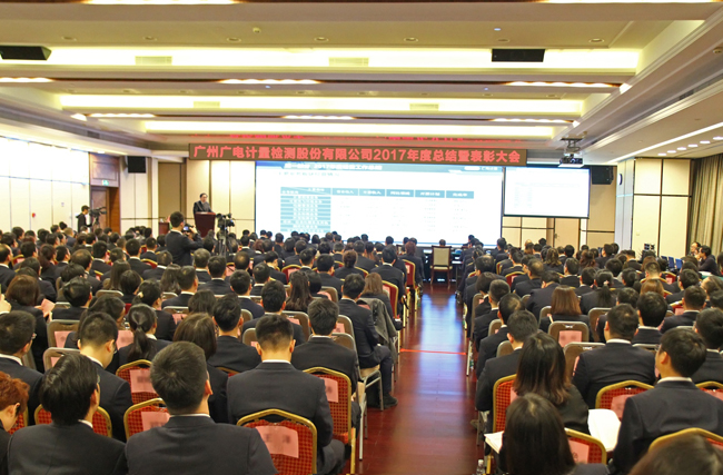 凝心聚力創佳績,砥礪奮進繪新篇。1月26日,廣電計量2017年度總結暨表彰大會成功召開,廣州無線電集團公司領導及各部門領導、廣電計量經營管理團隊、各子公司、各中心(部門)骨干員工代表齊聚廣州,共襄年度盛會。會議回顧年度大事,系統總結2017年取得的經營管理成果,表彰先進團隊及個人,并針對2018年工作進行部署。廣州無線電集團副董事長、總裁、黨委副書記、廣電計量董事長黃躍珍發表重要講話,廣電計量總經理、黨委副書記黃敦鵬代表公司作2017年度經營工作總結報告,會議由廣電計量副總經理曾昕主持。此外,大會特邀十余位計量檢測領域專家親臨現場,共享豐收喜悅。