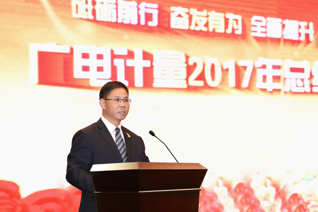廣州無線電集團副董事長、總裁、黨委副書記、廣電計量董事長黃躍珍發表重要講話。黃躍珍董事長從經濟保持高位增長、重點板塊快速增長、黨建工作逐步夯實等七個方面,對廣電計量在2017年的經營成績給予充分肯定,并對經營班子及全體員工一年來的艱辛付出所取得的優良業績表示祝賀。