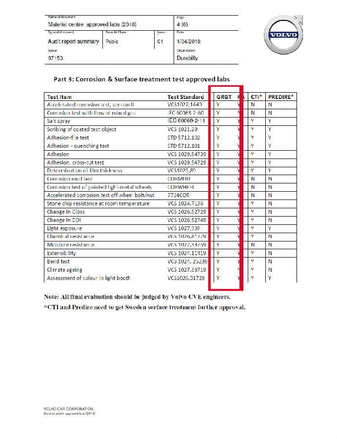 無錫子公司獲沃爾沃、眾泰汽車第三方實驗室能力認可