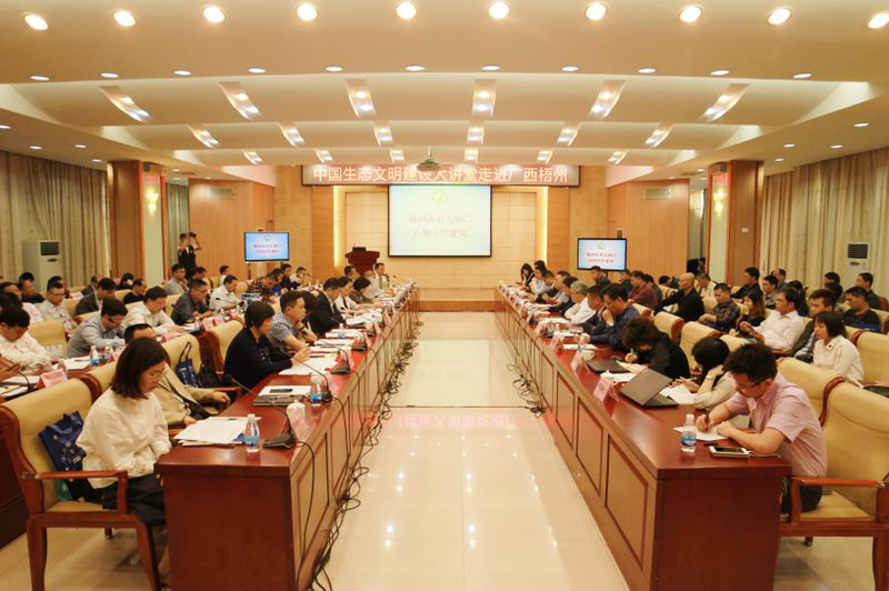 在大講堂走進廣西活動中,柳州市委常委、副市長郝興國,來賓市政府副秘書長張桂延,梧州市委常委、組織部部長張惠強,賀州市人民政府副秘書長陳灝等領導出席并致辭,對大講堂活動表示了歡迎,希望通過大講堂送來先進的技術、優質的資本和寶貴的合作機會,為加快當地生態文明建設增添新動能。大講堂邀請了原國務院三峽辦副主任、環境保護部黨組成員胡保林,中國生態文明研究與促進會執行副會長李慶瑞,國務院發展研究中心資源與環境政策研究所副所長常紀文,中國城市環境衛生協會工業固廢與危廢處理專業委員會主任凌錦明,中國社科院城市發展與環境研究所環境經濟與政策研究室主任李萌,廣西壯族自治區環保廳廳長助理孔源等環保領域權威專家,為與會人員解讀生態文明建設領域相關政策、傳播嶄新理念,并提供具體技術指導。