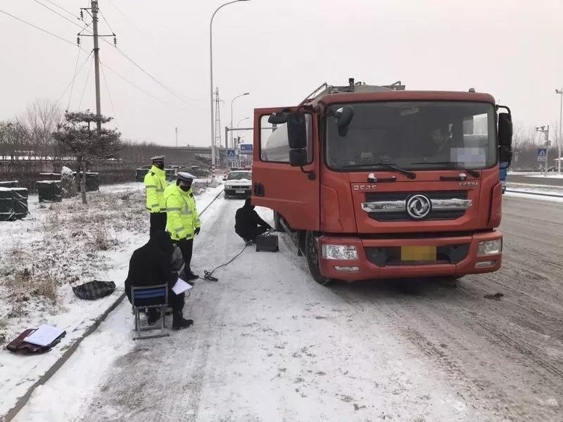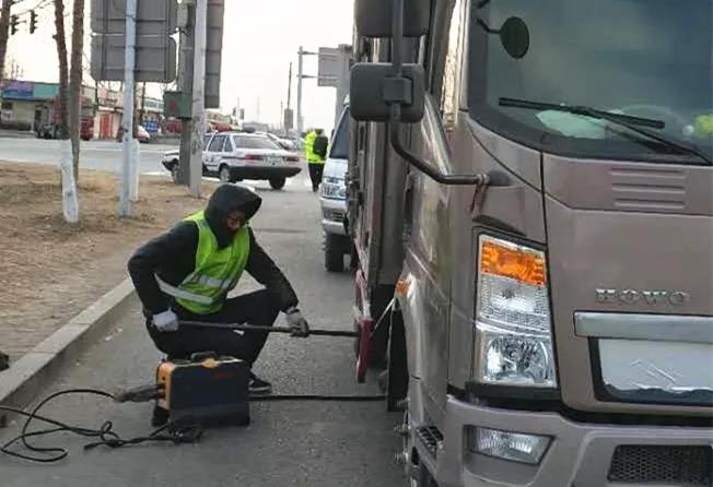 “掛空擋,拉手剎!”隨后,一名交警登上駕駛艙,用力踩下油門(mén),隨即傳來(lái)發(fā)動(dòng)機(jī)的轟鳴聲。與此同時(shí),還有一人正蹲著身子,將長(zhǎng)長(zhǎng)的管線(xiàn)插入大貨車(chē)的排氣管。