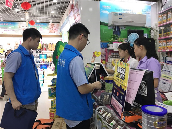經過一番說明,市民代表紛紛挑選了自己最關心的幾個品牌樣品。檢測人員付費后,隨即將產品的生產日期、生產批號等信息錄入國家食品安全抽樣檢驗抽樣單。最后,待店家確認封條、抽樣單、告知書信息是否正確后,再對樣品進行封樣。