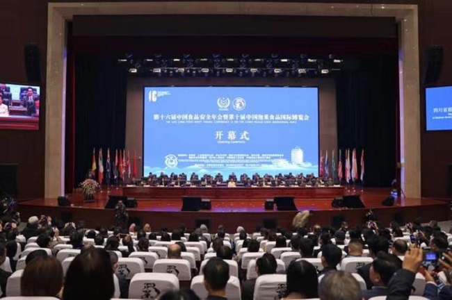 四川省人民政府副省長李云澤、中共眉山市委書記慕新海分別于開幕式上致歡迎辭,對各位嘉賓和各界朋友的到來表示熱烈歡迎和衷心感謝;國務院食安辦專家委員會副主任委員、原國家質檢總局副局長蒲長城,國家市場監督管總局食品安全總監王鐵漢,農業農村部農產品質量安全監管司司長肖放,中國食品工業協會副會長、秘書長沈篪,中國食品土畜進出口商會副會長戎衛東,四川省農業農村廳廳長楊秀彬,中國食品安全報社社長、總編輯朱長學均進行了致辭。