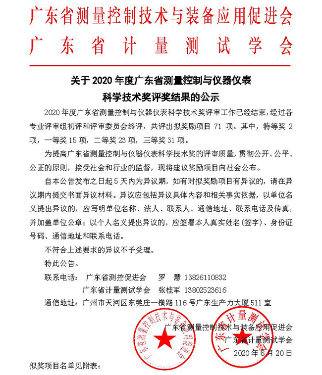 廣東省測量控制與儀器儀表科學(xué)技術(shù)獎是由廣東省測量控制與裝備應(yīng)用促進(jìn)會、廣東省計量測試學(xué)會聯(lián)合設(shè)立和承辦,面向全省測量控制與儀器儀表領(lǐng)域的科技獎項,旨在表彰測量控制與儀器儀表科技工作中做出突出貢獻(xiàn)的集體和個人,鼓勵測量控制與儀器儀表領(lǐng)域廣大科技工作者的積極性、創(chuàng)造性,促進(jìn)廣東省測量控制與儀器儀表科學(xué)技術(shù)的發(fā)展,提高測量控制與儀器儀表領(lǐng)域的綜合實力和水平。