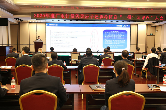 1月28日,廣電計量2020年度領導班子述職考評暨“一報告兩評議”大會召開,廣電計量黨委書記、總經理黃敦鵬等領導班子圍繞2020年工作總結及2021年工作計劃展開述職,廣電計量黨委副書記白云代表公司黨委報告2020年度選人用人工作情況。