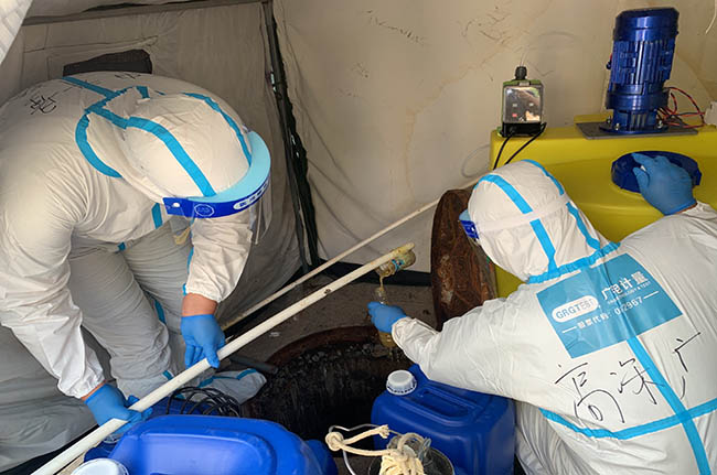 知之非難,行之不易。為切斷一切傳播風(fēng)險(xiǎn),不給病毒可乘之機(jī),確保所有人員安全,項(xiàng)目保障全流程按照最嚴(yán)格標(biāo)準(zhǔn)進(jìn)行:采樣器具定點(diǎn)專用、樣品實(shí)行三重消殺——包括采樣現(xiàn)場(chǎng)、交接現(xiàn)場(chǎng)、流轉(zhuǎn)實(shí)驗(yàn)室后分析前;相關(guān)人員穿戴防護(hù)服并集中安排住宿;相關(guān)廢物每天定點(diǎn)投放到固定醫(yī)療廢物收集點(diǎn);檢測(cè)分析指定專區(qū),數(shù)據(jù)實(shí)行網(wǎng)上電子傳報(bào)等。先鋒隊(duì)員們盡管每天都被浸泡在汗水中,卻沒有一句怨言,說的最多一句話就是:我還行,扛得??!