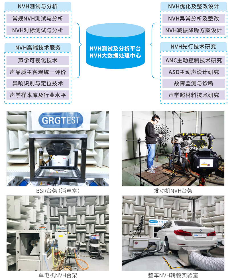 廣電計量搭建了一站式NVH技術研究平臺,可提供材料及結構強度、振動噪聲檢測及評價服務、振動噪聲狀態監測與診斷、振動噪聲數字化仿真及優化設計和結構減振降噪研究及整改。作為國內第三方NVH技術的服務先行者,目前,廣電計量已為汽車、船舶、軌道交通、航空、電力等國家戰略性高端行業提供綜合的NVH技術服務,協助客戶提升產品NVH品質。