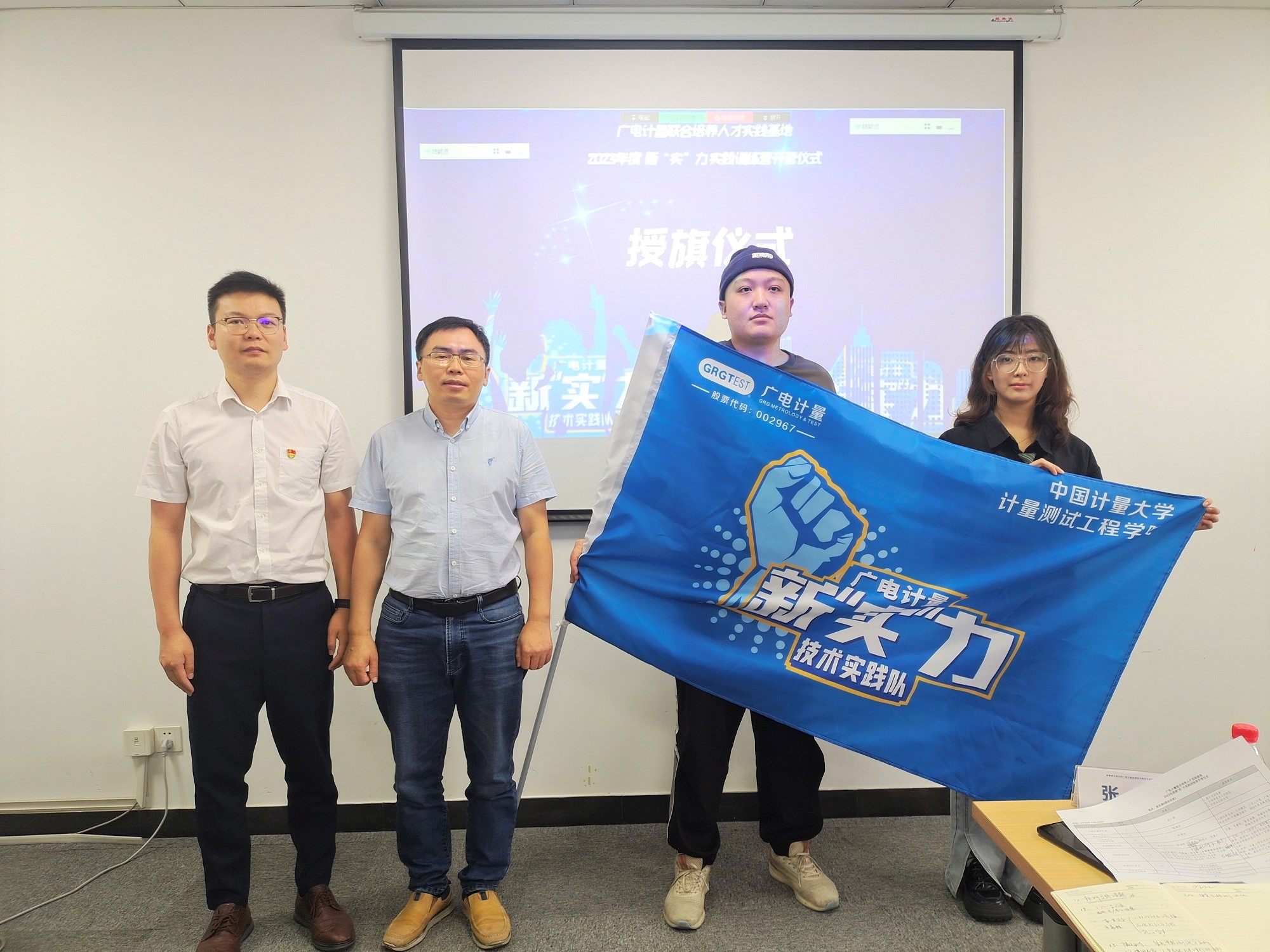 隨后舉行了授旗儀式,新“實”力訓練營旗幟由廣電計量交給各高校學生代表,宣告2023年度新“實”力實踐訓練營正式開營。