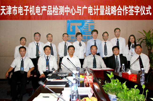 GRGT與天津市電子機電產品檢測中心建立戰略合作關系。雙方將在無線設備的檢測與認證、計量校準、EMC檢測、化學檢測、環境與可靠性檢測、安全檢測、職業資格培訓等業務的市場拓展和技術支持方面展開全面合作。2012年4月24日,雙方在廣州舉行了隆重的簽約儀式,天津市無線電管理委員會辦公室席懷軍主任、廣州無線電集團常務副總裁、廣電計量王俊董事長出席儀式并致辭。