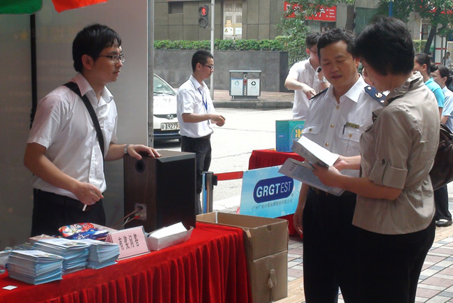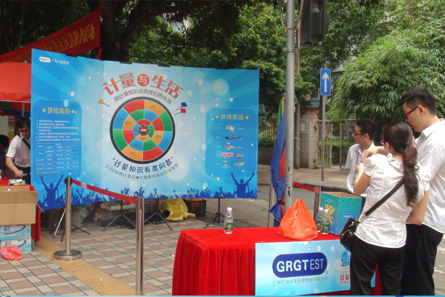 5月17日和20日,GRGT分別與廣州市黃埔區質量技術監督局和廣州市天河區質量技術監督局,聯合相關單位共同舉辦了主題為“計量與生活——5.20世界計量日計量惠民進社區送服務”的計量日宣傳活動。在兩地質監局的精心組織和大力支持下,GRGT策劃、組織、承辦了計量知識有獎知識問答宣傳活動,將計量知識融入趣味性飛鏢計分有獎問答游戲,向廣大市民科普民生計量知識。