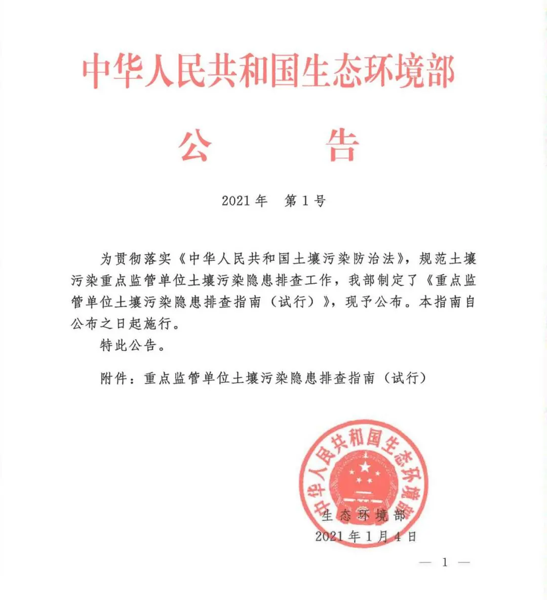 為貫徹落實(shí)《中華人民共和國(guó)土壤污染防治法》,規(guī)范土壤污染重點(diǎn)監(jiān)管單位土壤污染隱患排查工作,生態(tài)環(huán)境部于2021年1月4日發(fā)布了《重點(diǎn)監(jiān)管單位土壤污染隱患排查指南(試行)》(以下簡(jiǎn)稱《指南》)。