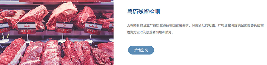 為響應政府監管及企業、農戶的質控需要,廣電計量特推出飼料、畜禽肉、水產品中瘦肉精及其他各類獸藥殘留檢測服務,助力牲畜養殖場(戶)、商超、生鮮平臺及生產廠家把控安全風險,提升產品質量。