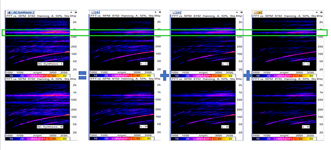 答:例如某車型在加速過程中,車內有共振現象,特征頻率中心頻點750Hz。通過傳遞路徑分析,該問題由固定在前圍板上的空調管路引起,從下圖可以看出空調管路的三個方向都有貢獻。