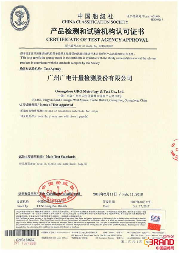 日前,廣州廣電計(jì)量檢測(cè)股份有限公司(簡(jiǎn)稱廣電計(jì)量)先后獲得國(guó)際船級(jí)社協(xié)會(huì)核心成員、世界兩大權(quán)威船舶技術(shù)檢驗(yàn)機(jī)構(gòu)中國(guó)船級(jí)社(CCS)及美國(guó)船級(jí)社(ABS)船舶有害物質(zhì)檢測(cè)機(jī)構(gòu)認(rèn)可,成為華南地區(qū)首家同時(shí)獲得中美兩大船級(jí)社有害物質(zhì)檢測(cè)認(rèn)可的第三方計(jì)量檢測(cè)機(jī)構(gòu)。據(jù)悉,這是繼2010年廣電計(jì)量首次獲得中國(guó)船級(jí)社(CCS)電氣電子產(chǎn)品試驗(yàn)認(rèn)可及無(wú)石棉檢測(cè)認(rèn)可之后,再度獲得的船舶檢測(cè)領(lǐng)域重要認(rèn)可。依據(jù)CCS、ABS相關(guān)規(guī)范、規(guī)則和程序的要求,廣電計(jì)量通過(guò)一系列嚴(yán)格審核,順利獲得兩大船級(jí)社頒發(fā)的船舶有害物質(zhì)檢測(cè)認(rèn)可證書(shū),這既是對(duì)廣電計(jì)量專業(yè)檢測(cè)技術(shù)能力的進(jìn)一步肯定,同時(shí)也將推動(dòng)廣電計(jì)量在 “綠色造船”進(jìn)程中發(fā)揮更積極的作用,為我國(guó)打造綠色健康船舶業(yè)再添檢測(cè)技術(shù)動(dòng)力。