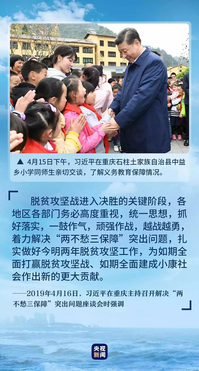 “全面小康路上一個也不能少。”這是習近平總書記常說的一句話。這一年,習近平在重慶、江西、內蒙古、甘肅、河南等地方考察時,都來到脫貧攻堅第一線,了解脫貧情況。