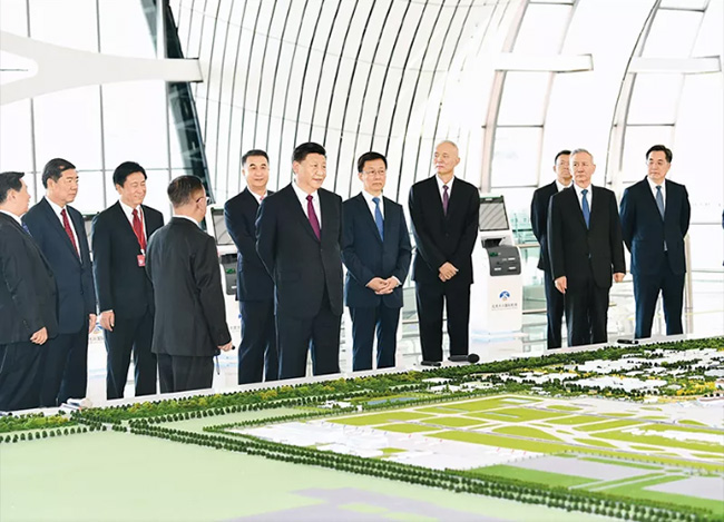 2019年9月25日上午,北京大興國際機場投運儀式在北京舉行。中共中央總書記、國家主席、中央軍委主席習近平出席儀式,宣布機場正式投運并巡覽航站樓。這是習近平在綜合交通中心聽取機場綜合交通體系建設(shè)情況介紹。 新華社記者 謝環(huán)馳/攝