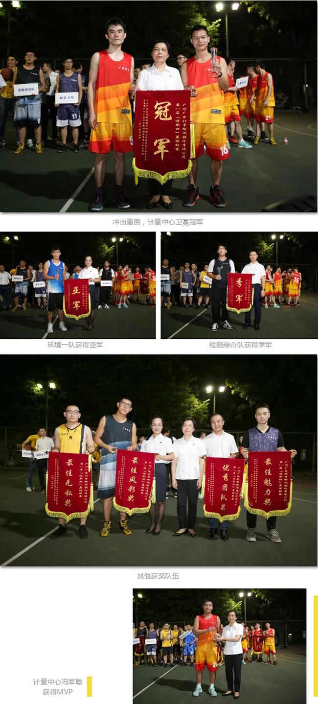 從聯賽啟動到9月11日,歷經21場激烈角逐,第八屆“迎新杯”籃球聯賽圓滿落幕。其中計量中心隊、環境可靠性一隊、檢測綜合隊奪得團體冠、亞、季軍;質量學院綜合隊、職能綜合隊、環境中心二隊、新生力隊分別獲得優秀團隊獎、最佳風采獎、最佳無私獎和最佳魅力獎。同時,計量中心隊馮軍聰獲得本屆聯賽MVP。