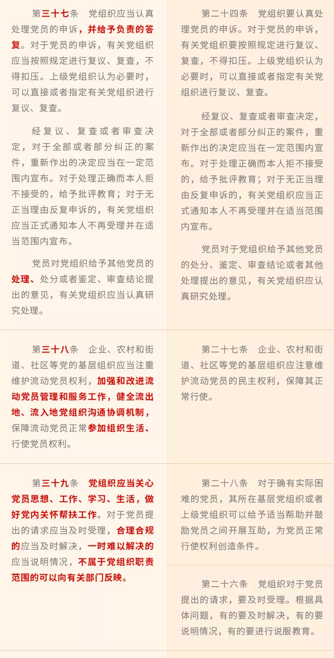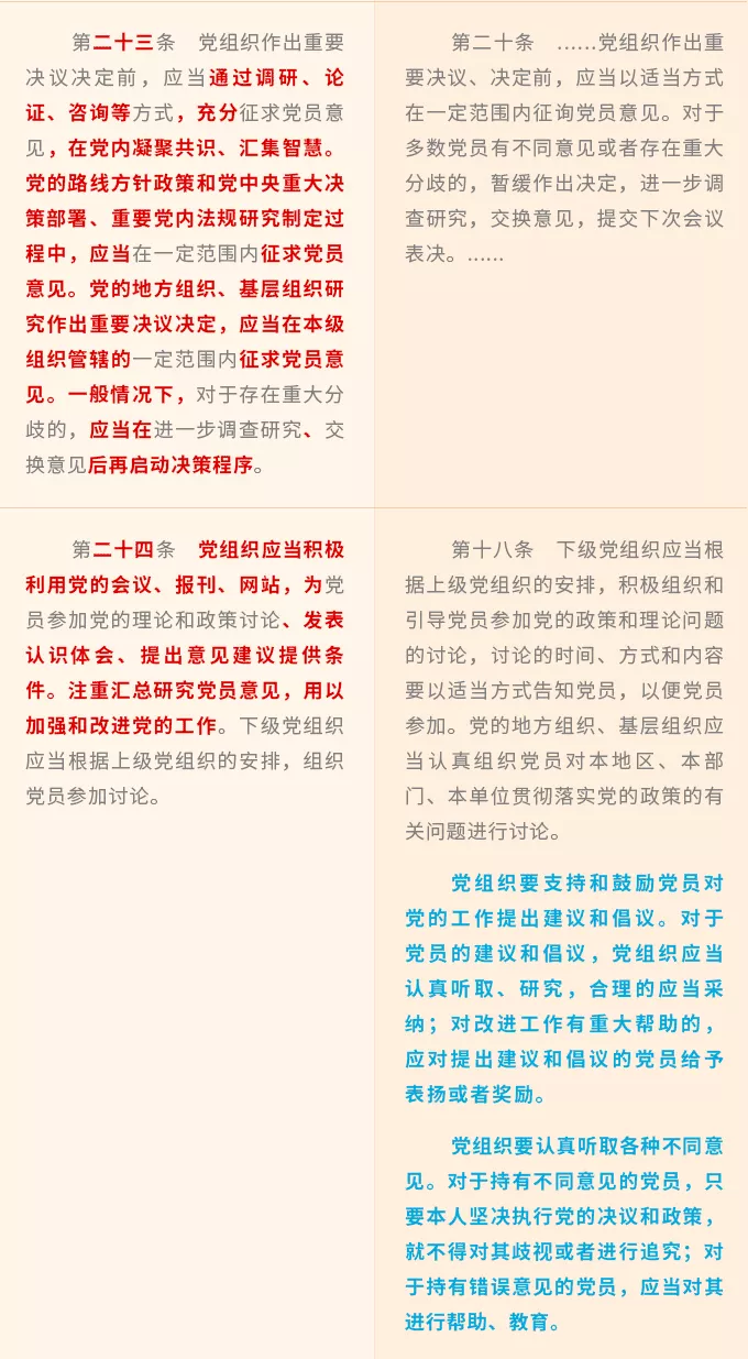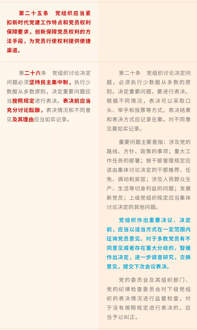 新增規(guī)定黨的基層組織保障黨員權(quán)利的職責(zé),要求基層組織發(fā)揮戰(zhàn)斗堡壘作用,著力打通黨員權(quán)利保障工作的“最后一公里”。