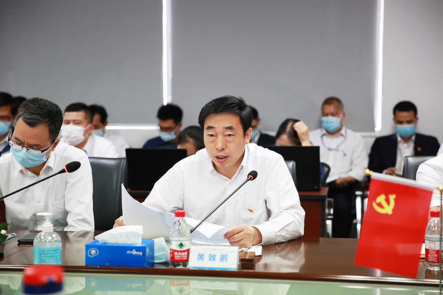 廣電計(jì)量黨委書記、總經(jīng)理黃敦鵬,黨委副書記白云,紀(jì)委書記謝春霖出席會(huì)議。會(huì)議由黨委委員、黨群辦公室主任鐘桂芳主持,全國26個(gè)支部全體黨員和入黨積極分子分別現(xiàn)場、視頻參加了此次會(huì)議。