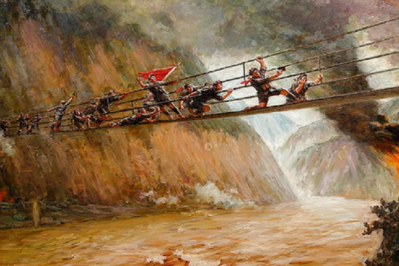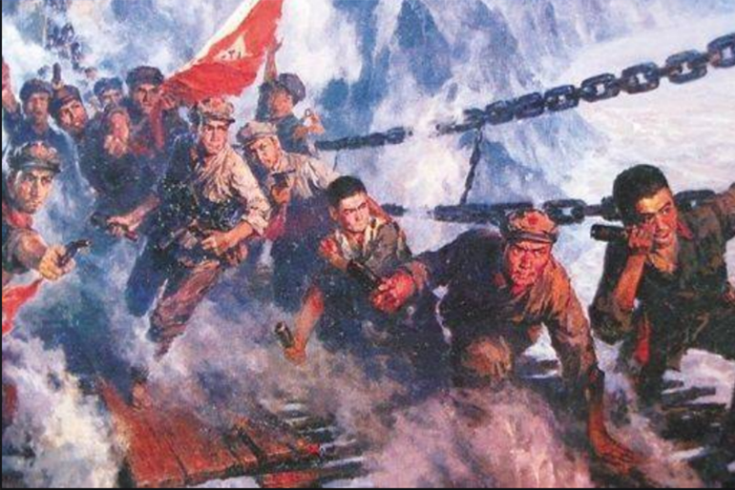 1935年5月,北上抗日的紅軍向天險(xiǎn)大渡河挺進(jìn)。大渡河水流湍急,兩岸都是高山峻嶺,只有一座鐵索橋可以通過。這座鐵索橋,就是紅軍北上必須奪取的瀘定橋。
