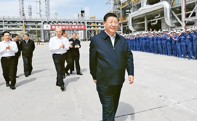 2021年9月13日至14日,中共中央總書記、國(guó)家主席、中央軍委主席習(xí)近平在陜西省榆林市考察。這是13日上午,習(xí)近平在國(guó)家能源集團(tuán)榆林化工有限公司年產(chǎn)40萬噸乙二醇項(xiàng)目現(xiàn)場(chǎng)考察。 新華社記者 李學(xué)仁/攝