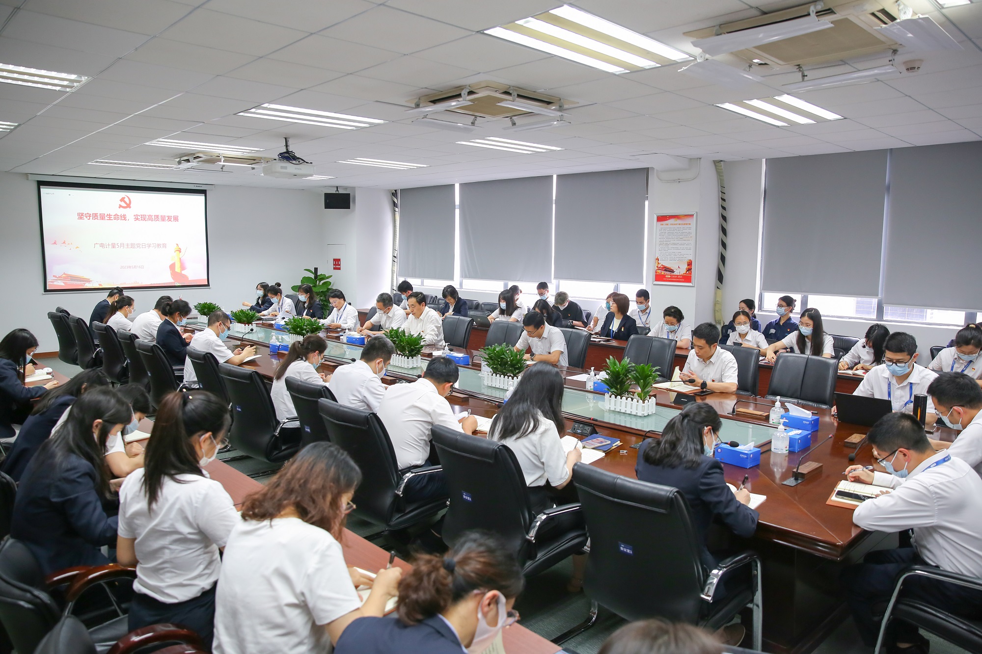為深入學(xué)習習近平新時代中國特色社會主義思想,進一步引導(dǎo)全體黨員牢記“品質(zhì)成就未來”質(zhì)量方針,筑牢質(zhì)量基礎(chǔ),持續(xù)強化全國基地質(zhì)量管控,全面提升質(zhì)量管理效益,以實際行動踐行主題教育總體要求,在公司第九屆“質(zhì)量月”系列活動如火如荼開展之際,5月16日,廣電計量黨委組織開展“堅守質(zhì)量生命線,實現(xiàn)高質(zhì)量發(fā)展”主題黨日暨“一季一警”學(xué)習教育活動。廣電計量31個黨支部黨員和入黨積極分子共500余人,分別在廣州總部多個會場以及子公司分會場,通過現(xiàn)場、視頻的方式參加此次學(xué)習教育。